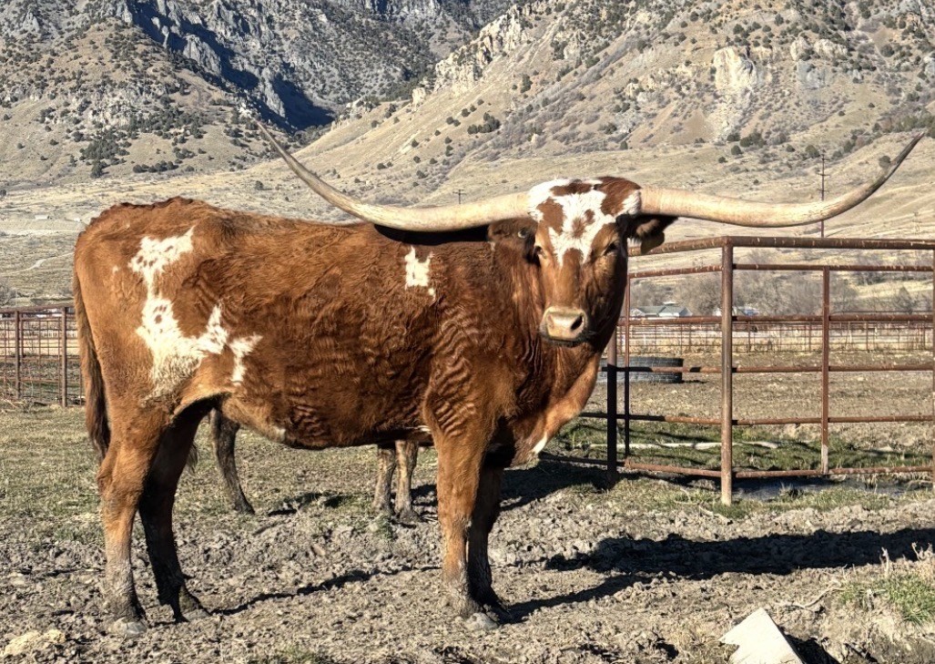 This young heifer is going to be something special. She was just shy of 60” TTT in November. She is AI’D to Drop Box. Lucky is consigned to the 2024 Legacy Sale. Had a Drop Box bull calf on April 12 2024. White with red head and legs. In with JH Rural Blackout from 4-12-24 to 9-9-24. In with Iron Rifle RBR on 9-9-24 to 10-15-24 and then back in with Blackout.