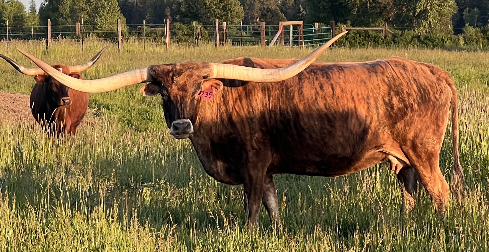 Big-horned young brindle cow that has a sweet disposition. Lots to like with this one!