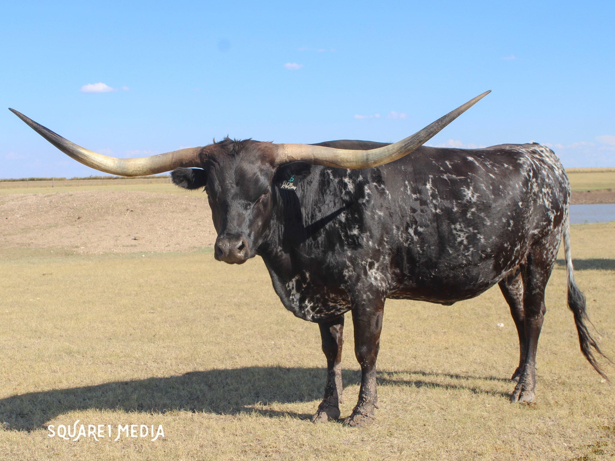 Flashy black and white beauty with the beginning of the iconic lateral horns twisting most elegantly. She had a dark Grulla speckled heifer in November 2021. Her dam is a daughter of Overkill bringing size, milk, and black color to the table. Her sire is the syndicated Rebel HR. The color options are unstoppable with an elegant twist. Her half sister HR Rosette sold for $700k and Awesome Reb for $140k at the 2022 Legends Sale most recently. The list goes on for what Rebel HR genetics can do to enhance your herd.