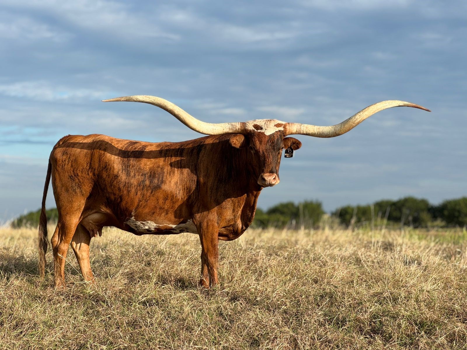 Nearly 100” TTT brindle beauty. Beautiful Heart is out of Cornerstone ECR X ECR Hermosa and boasts greats like ECR Esteemed Sister, Hunts Command Respect and Phenomenon