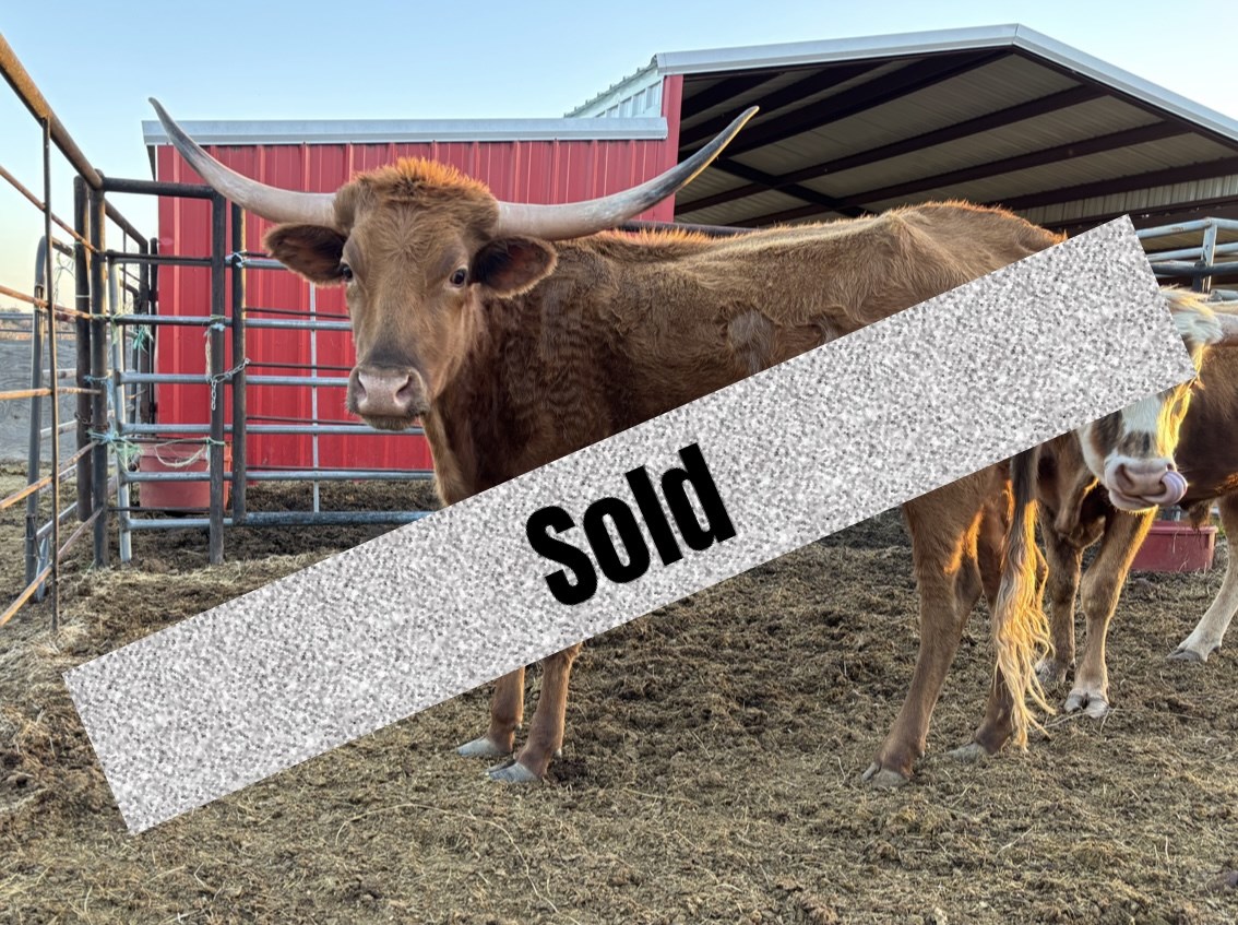 We are hopeful that this heifer will develop the twisty lateral horns of her dam.