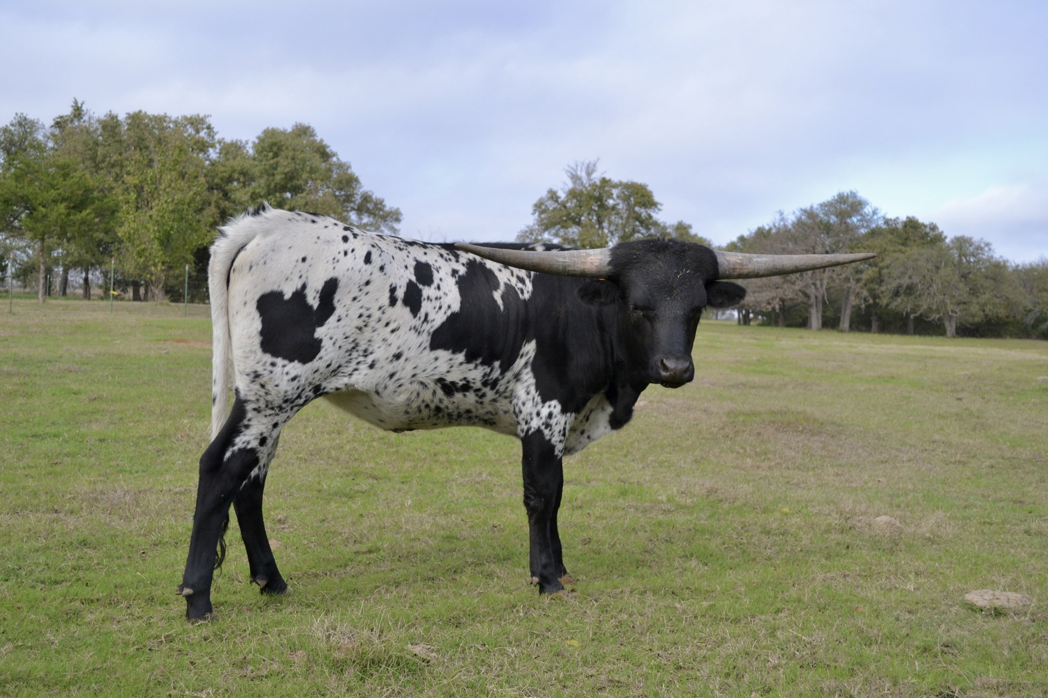 Look at this black and white cutie! Meet Midnight Magic CPL. She is out of the 2024 Horn Showcase Get of Sire winner PCC Run Away Gray. On the bottom side she traces her lineage to 2017 Hall of Fame cow Awesome Sarah. She continues to push out some lateral horns now measuring 49" at 18 months. We love the new color and genetics she brings to the Ironwood herd.