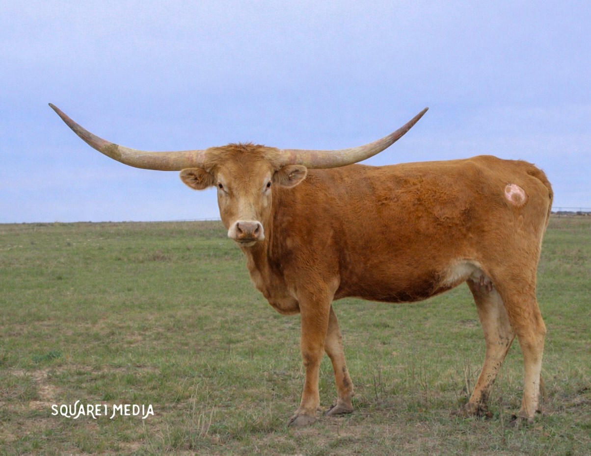 Rebel Dream is an excellent example of a typical longhorn. Not much color but the genetics the body and horn she has makes up for that. She has a sweet disposition as well.
