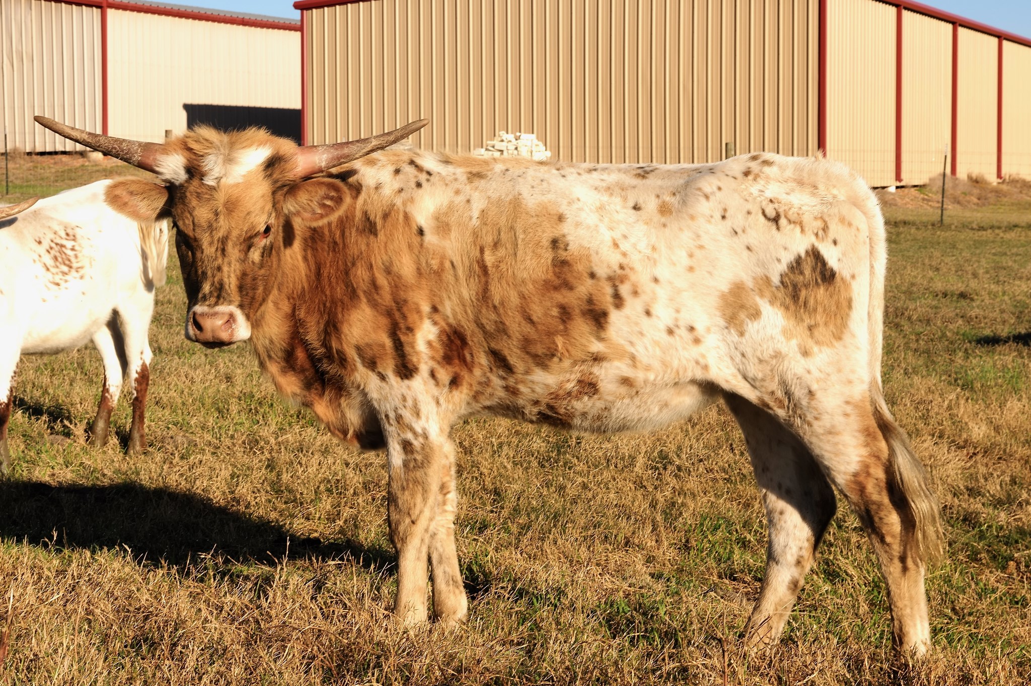 Tri-color heifer from one of our favorite families of Longhorn Cattle