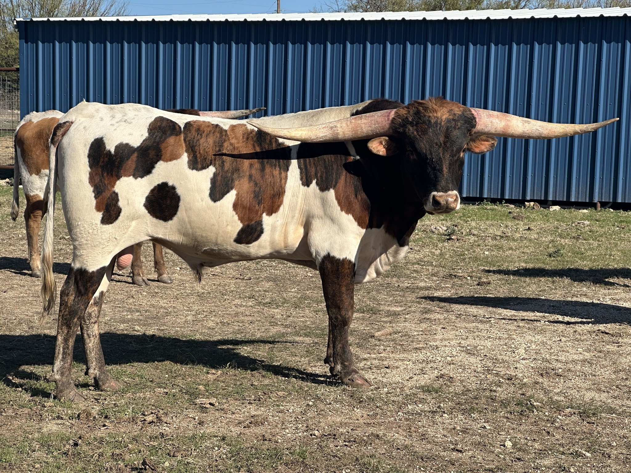 We are honored to partner with Jimmy Jones on this young bull! His sire, Game Changer 044 is a 2020 bull with over 90” horn who won multiple Futurities before gong to work. Game Changer’s dam is a great, grand-daughter to the iconic Horseshoe J Journey. Semper Fi’s Dam, Horseshoe J Latitude, goes back to Field Test and is a huge, smooth bodied cow with amazing graceful rolling horn. He has just been put on his first heifers and we are looking forward to his first offspring in 2026!