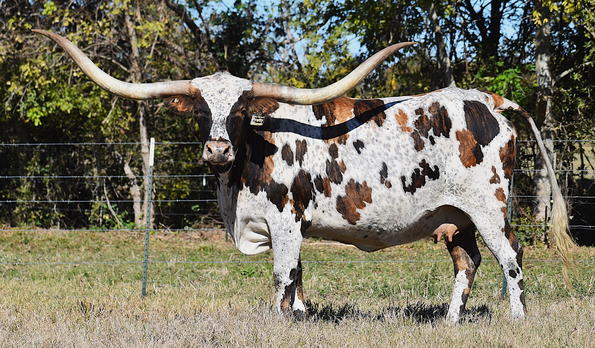 The matriarch of our herd. She was one of the first cows we purchased to begin our herd. She raises big, beautiful calves who have gentle demeanors. In her pedigree you’ll find she is a grand daughter to the great JP Rio Grande who brings in J.R Grand Slam & TX W Lucky Lady. She is also a grand daughter to RM Super Carmela 350. Pretty Woman’s dam, Pacific Valentine, brings in Red Ace Lobo & HC Emperor Southern Bell. Pretty Woman is confirmed bred to the 90" Jammin Tex for a late 2025 calf!