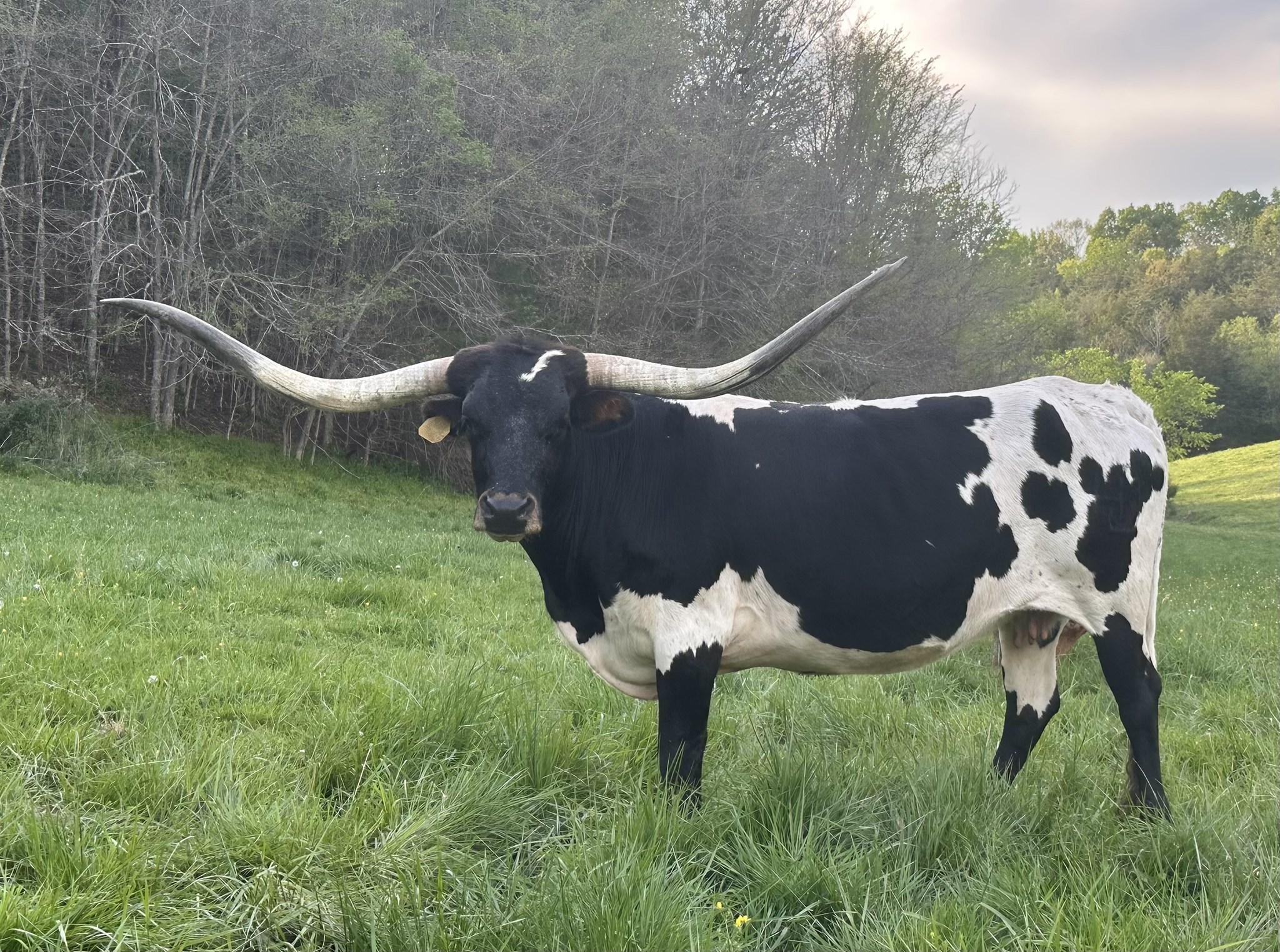 Sired by one of the greats, the late WS Jamakizm, makes her a half-sister to the legend 90"TTT Drag Iron, and goes back to Senator, Dohtery 698 and Overwhelmer. With an extremely strong maternal line of cows as well, her dam Allens 585 Firefly is 88.50"TTT, her great dam ZD Rocks 585 Firefly is 87"TTT and her maternal great sire is the over 88"TTT Top Caliber to bring in Hunts Command Respect. Stacked with some of the greatest names in the breed, she is beautifully marked with great color, wonderful conformation, a nice horn direction .
