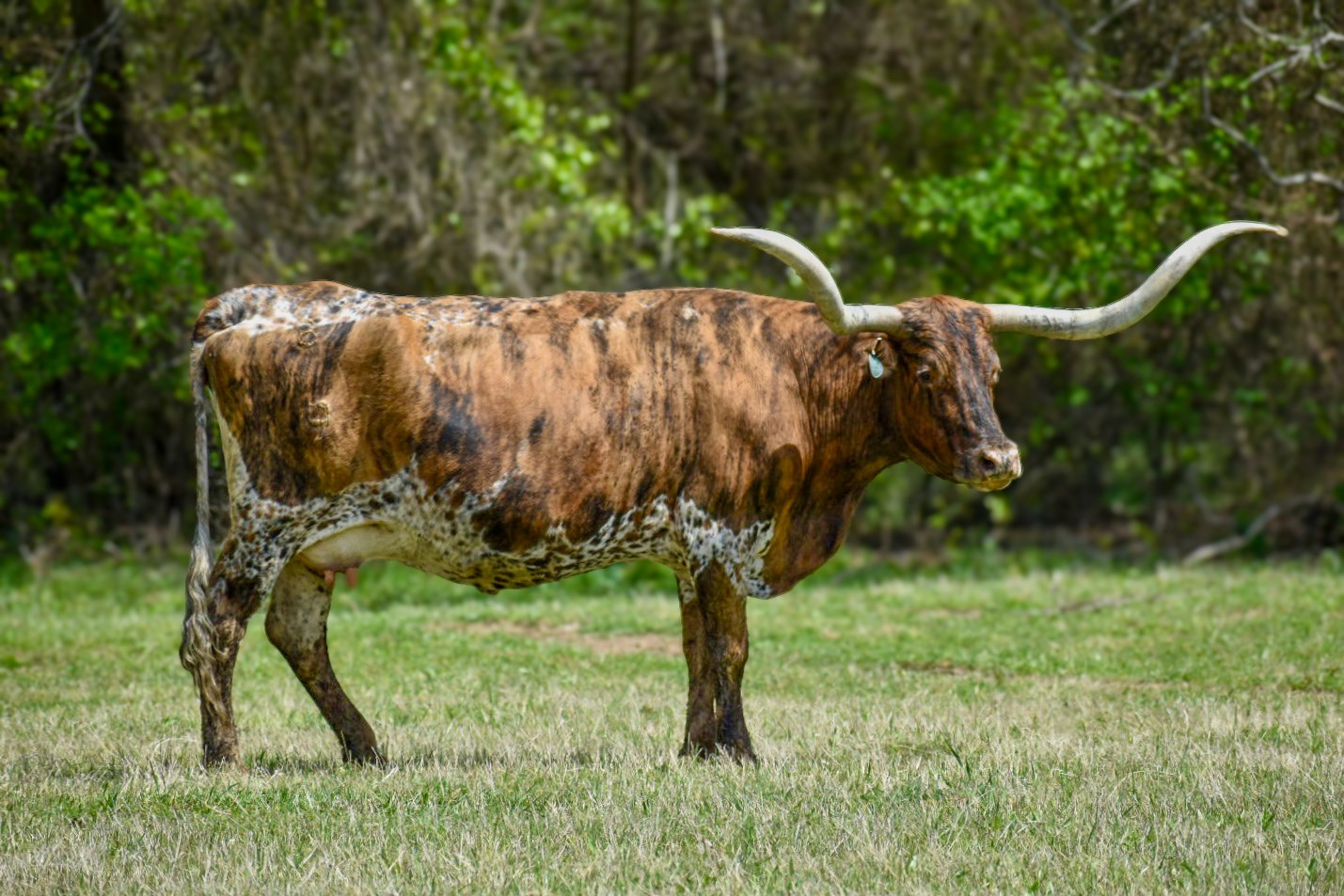 GiGi is the epitome of a foundation cow. We love her confirmation, color, outstanding udder, and horn. She gets her large capacity from her sire, Boomerang CP, Emperor, and many more of those incredible old-fashioned bulls. She has consistently given us well-built, flashy claves with a high growth rate and calm personalities. This girl has found a home for the rest of her life!
