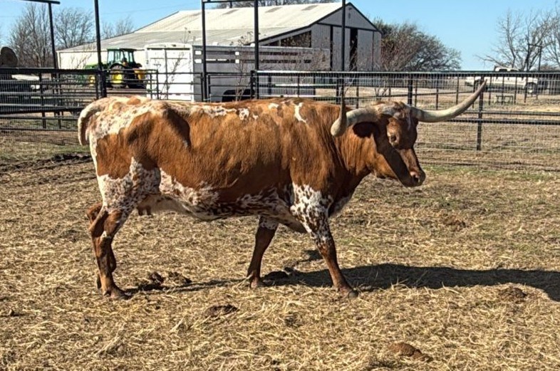 Pretty, brindle, gentle daughter of Bwana Chex. Her dam, BL Drizzle is from a powerful cow family on top and by the great Cowboy Tuff Chex, the Guiness record holding longest horned bull in the world! This is going to be a great cow!