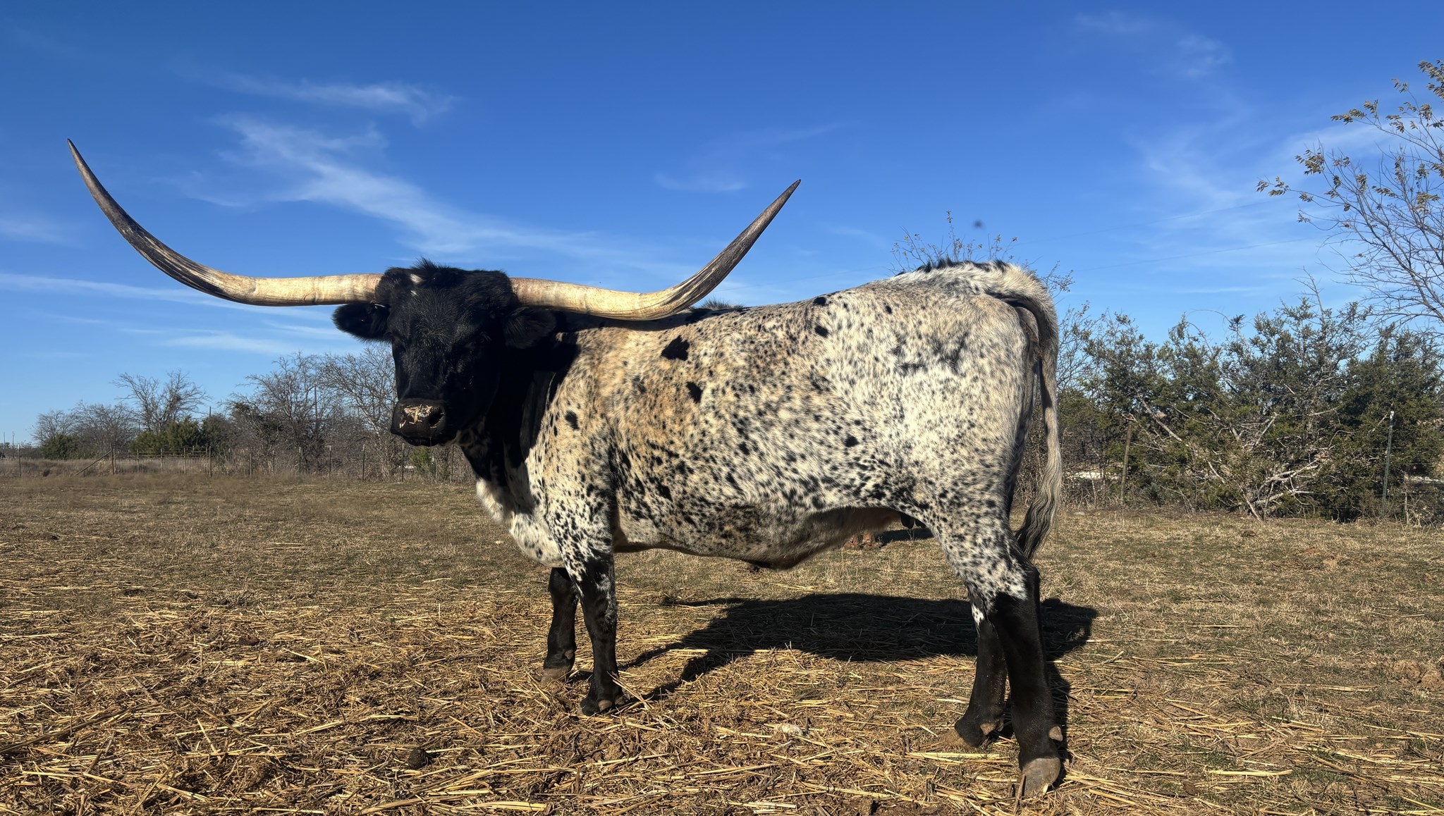 We are really excited about this cow. She has a lot of horn for her age. She is a deep bodied cow with great conformation She has the TRUE BLACK and white color. She produces color, conformation and horn.