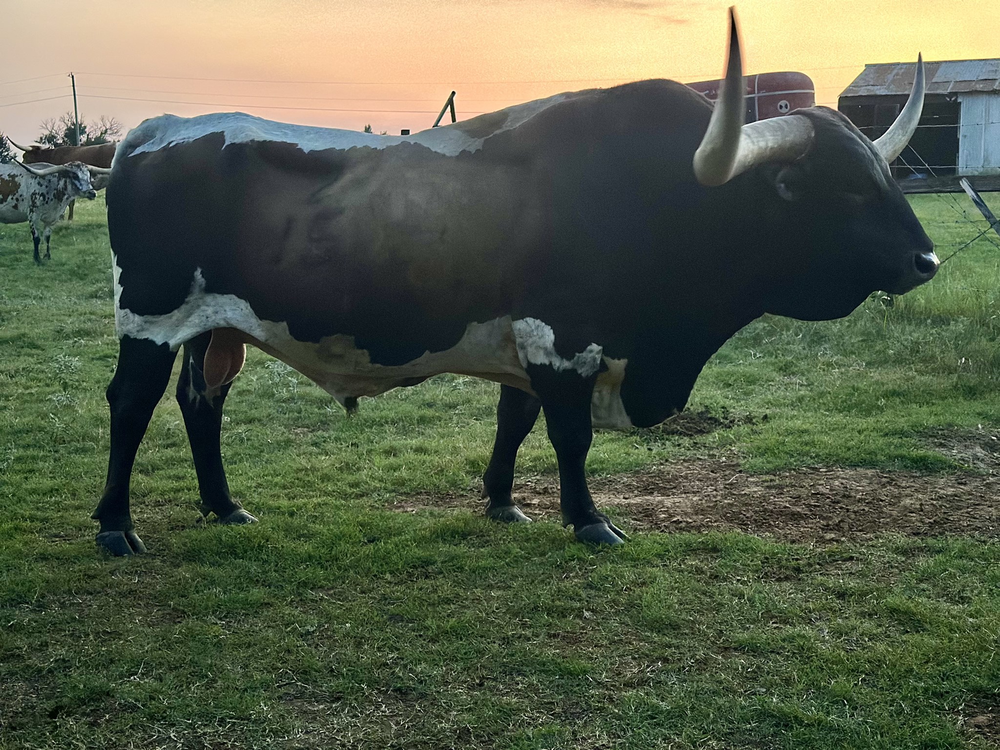 Great calm disposition easy to work and easy keeper. Great coloring and great bodied bull. Sired by Zeus EOT (full brother to BL Rio Catchit) which brings in JP Rio Grande and BL Catchit. On the bottom side his grand sire is Auze EOT 38/8 out of EOT Outback Cherry. No Cowboy Tuff or Jamakizm genetics so he is a great option to diversify those genetics!